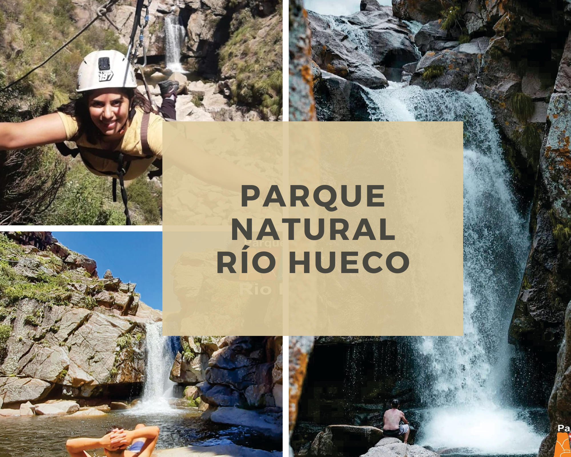 El Parque Natural Río Hueco está ubicado sobre el camino de las Altas Cumbres en el km 25.7 El costo incluye: traslado, ingreso, tirolesa, balneario, visita guiada y seguro de responsabilidad civil (que posee el Parque). Actividades a partir de los 6 años de edad. Durante el recorrido realizaremos 3 caminatas de 30 minutos aprox. (dificultad y exigencia media a media alta en el último tramo), dos cascadas Río Hueco y Los Helechos, y una tirolesa de 100 metros de largo mecanizada, para el disfrute de grandes y chicos. Horario de la excursión es desde 10:00 hs a 17:30hs aproximadamente.