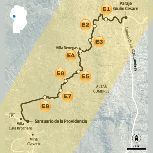 Un disfrute de sabores y colores nos aguarda en este recorrido. La profundidad de su Dique y la posibilidad de embarcarnos en su historia, nos asombra. Un circuito con historia donde visitaremos El Perchel, un paraje de la localidad de Las Calles, y una pulpería donde se encuentra la primera licorería artesanal de Traslasierra, Eben Ezer. Concluimos conociendo la localidad de Nono, su plaza, iglesia y un recorrido por el paseo de las esculturas.